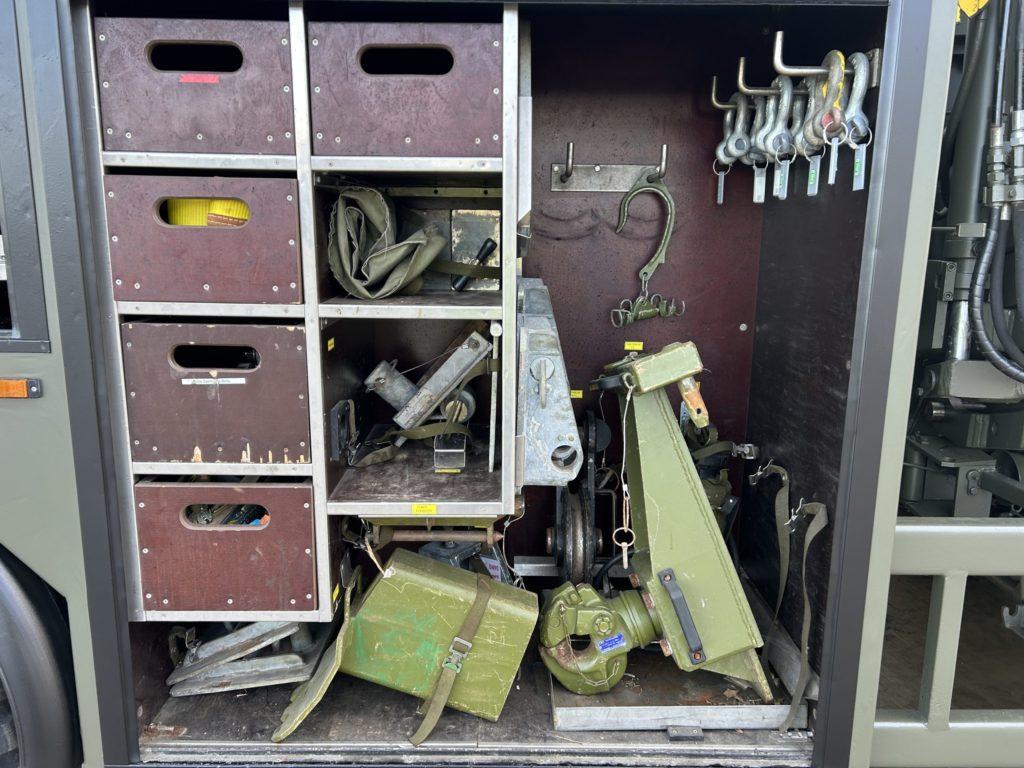 The rear underlift recovery system is manufactured by H F Nielsen. Hydraulic extendable under lift system with two rear hydraulic support anchor legs